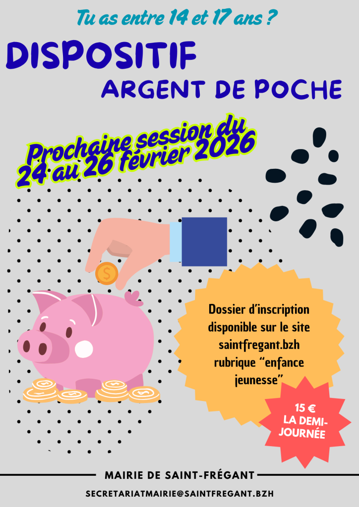 Dispositif argent de poche du 24 au 26 février 2026 (8h30 à 12h)